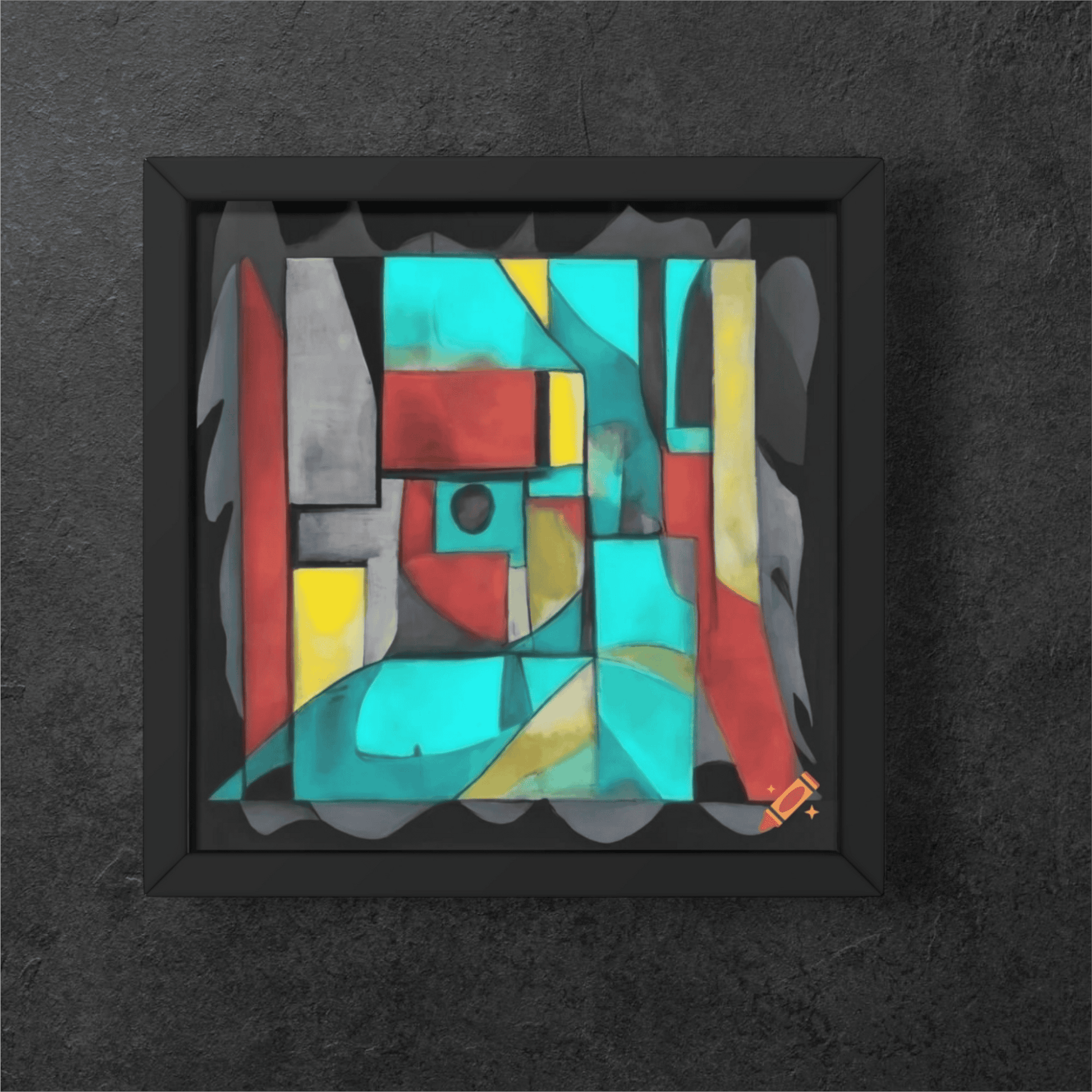 Transform your space with this modern geometric abstract painting, a striking fusion of bold shapes and vibrant colors. The interplay of turquoise, red, yellow, and gray tones creates a sense of depth and movement, making this piece a contemporary masterpiece.